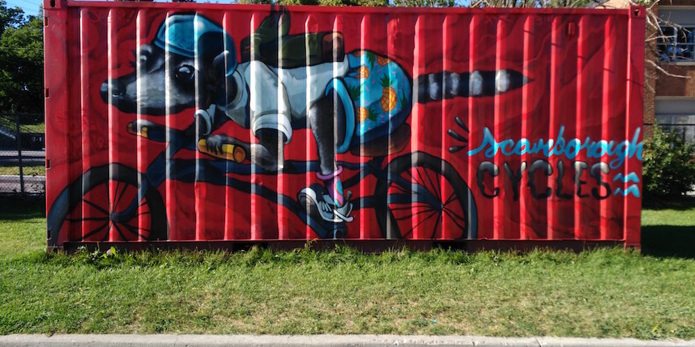 “The community response to the mural has been overwhelmingly positive, and we think it makes a great background for our activities at the hub, especially since there is nothing in the community that look like it. We think the mural definitely helps with our efforts to build bike culture in Scarborough, through identification and placemaking, said Marvin Macaraig, Community Health Worker and Scarborough Cycles Bike Hub Coordinator at Access Alliance Multicultural Health and Community Services on the Danforth.