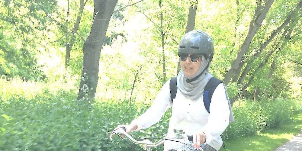 The program provides an inclusive and supportive community for hijabis and their allies and creates a comfortable and accommodating space for them to engage in recreational bike rides, grow their cycling skills, and explore the city.