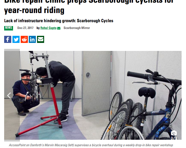 “We hope everyone walks away with a basic understanding (of cycle repair),” said Macaraig who, along with staff ranging from four to seven volunteers, helps administer the weekly clinic which is held at the AccessPoint on Danforth community hub.