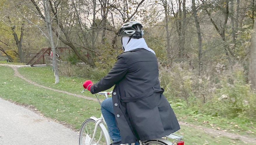 The ‘Hijabs and Helmets’ project is intended to serve refugees and immigrant communities. It engages and recruits Hijabi women and their allies to promote cycling as a recreational activity. The program also puts emphasis on raising the participants’ leadership skills and training them to combat racism, hate and micro-aggressions that are rampant against visible religious minority women.