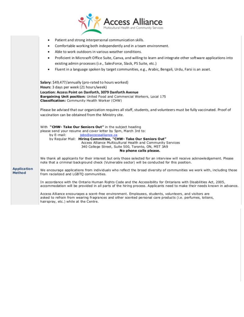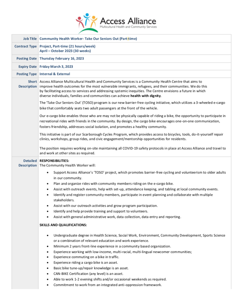 Job Opportunity: Community Health Worker- Take Our Seniors Out (Project, Part-time)February 16, 2023 Job Posting: PDF Download