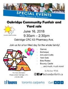 Come join us as we ride to the start of the Bells on Danforth and ride with hundreds of residents along the Danforth to the Oakridge Community Fun Fair!